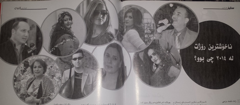 ساڵی 2014 بۆ ههموومان ناخۆشترین ساڵ بوو، بۆ هونهرمهندان دووجار ناخۆش بوو، كه ساڵێكی وشك و بێ بهرههمی هونهری بوو، 2014 تهنیا چوار رۆژی تێدا ماوه و هونهرمهندانیش لهم راپۆرتهی (سڤیل) باسی ناخۆشترین رۆژی خۆیان دهكهن لهمساڵدا.