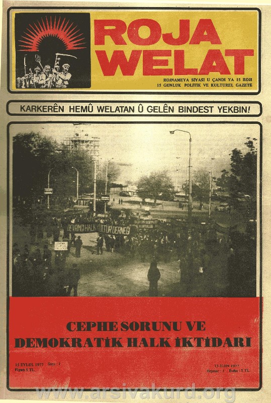 (٣)- ڕۆژا وەلات: ڕۆژنامەیەکی سیاسی و ئەدەبی، نیو مانگی بووە. یەکەم ژمارەی بە مۆڵەتی فەرمی دەوڵەت، بەزمانی کوردی(کرمانجی ژووروو و زازایی-لاتینی)و تورکی لەشاری ئەنقەرە، لەڕێکەوتی (١٥/٩/١٩٧٧)دا، دەرچووە. لەگەڵ دەرچوونی یەکەم ژمارەیدا، دەوڵەت بڕوبیانووی زۆرو جۆر بەجۆری پێگرتووە. پاشان مۆڵەتی دەرچوونی لێسەندراوەتەوە، قەدەغە کراوە. کاتێک کە سەرپەرشتیارانی سەردانی والی(پارێزگاری ئەنقەرە) دەکەن و داوای مۆڵەت وەرگرتنەوە دەکەن، والی لێیان لەڕق ڕادەچێت و بە توڕەییەوە پێیان دەڵێت؛( بۆتان نییە ڕۆژنامەی کوردی دەربکەن، سەرتان دەبڕین). لەگەڵ بڵاوبوونەوەی یەکەم ژمارەدا، لێپرسراوەکانی؛(مستەفا ئایدن و سەدیق بۆزئەرسەلان)، زیندانی دەکرێن. پاش قەدەغەکردنی بەناچاری بارەگای ڕۆژنامەکە بۆ ئیستانبوڵ دەگوازنەوە. ژمارە (١٢)ی دواژمارە بووە کە لە (١٥/١٢/١٩٧٨)، لە تورکیادا دەرچووبێت. ژمارە سێزدەی لە ئەڵمانیا دەردەچێت و لەوێ درێژە بە بڵاوکردنەوەی دەدەن. هەر بۆ زانیاری، ئەم (ڕۆژا وەلات)ەی باسمان کردووە، جیایە لەگەڵ ئەم (ڕۆژا وەلات)ەی کە یەکەم ژمارەی لە شوباتی (١٩٧٨)دا، لە سوید دەرچووەو فۆرمەکەی بۆتە گۆڤارو (پارتی سۆسیالیستی کوردستان-تورکیا)، خاوەنی بووە.