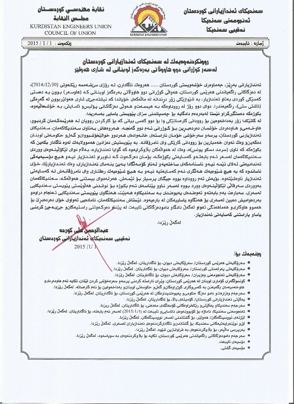 ڕوونکردنەوەیەک لە سەندیکای ئەندازیارانی کوردستان