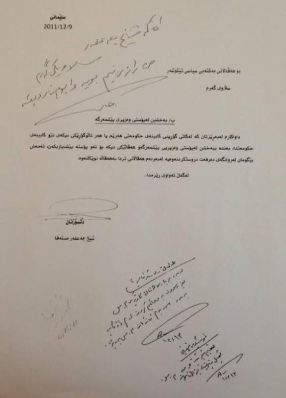 یەک شت دەڵێم بە رونی بۆم بڵاو بکەنەوە کوردی خۆمان 'دەڵێت بەرد لە جێی خۆی سەنگیە ' من پێویستم بەوە نیە لە شوێنێکەوە بۆ شوێنێکی تر بچم، پێویستم بە هیچ شتێک نیەو بۆیە بە هیچ شتێک هەڵناخەڵەتێم! من کە بە خەیاڵما نەهاتوە ببمە ئەندام مەکتەبی سیاسی کە مەرکەزێکی گرنگە، و لە حوکمەتدا ببمە وەزیری پێشمەرگە کە لەوەزارەتی پێشمەرگە گرنگ تر نیەبەڵگەش بۆ ئەمەکۆپی ئە نوسراوەی کە ۲٠۱۱ ناردومە بۆ مەکتەب سیاسی، ئەگەر تامەزرۆی دەساڵات و سامان بومایە ڕێگا زۆربو بیگرمە بەر بە درێژای ۲ کابینە وەزیری پێشمەرگە بوم تەحەدا ئەکەم بڕۆن بۆ چاودێری دارای تەنها یەک دینار !، یەک فیشەک، یەک تفەنگ تەنانەت یەک بەتانیش لە ماوەی دەسەڵاتی مندا ونبوبێت من هەرگیز پێویستم بە هیچ نەبوە جگە لە خۆ فیداکردن بۆ خاک و خەڵک.