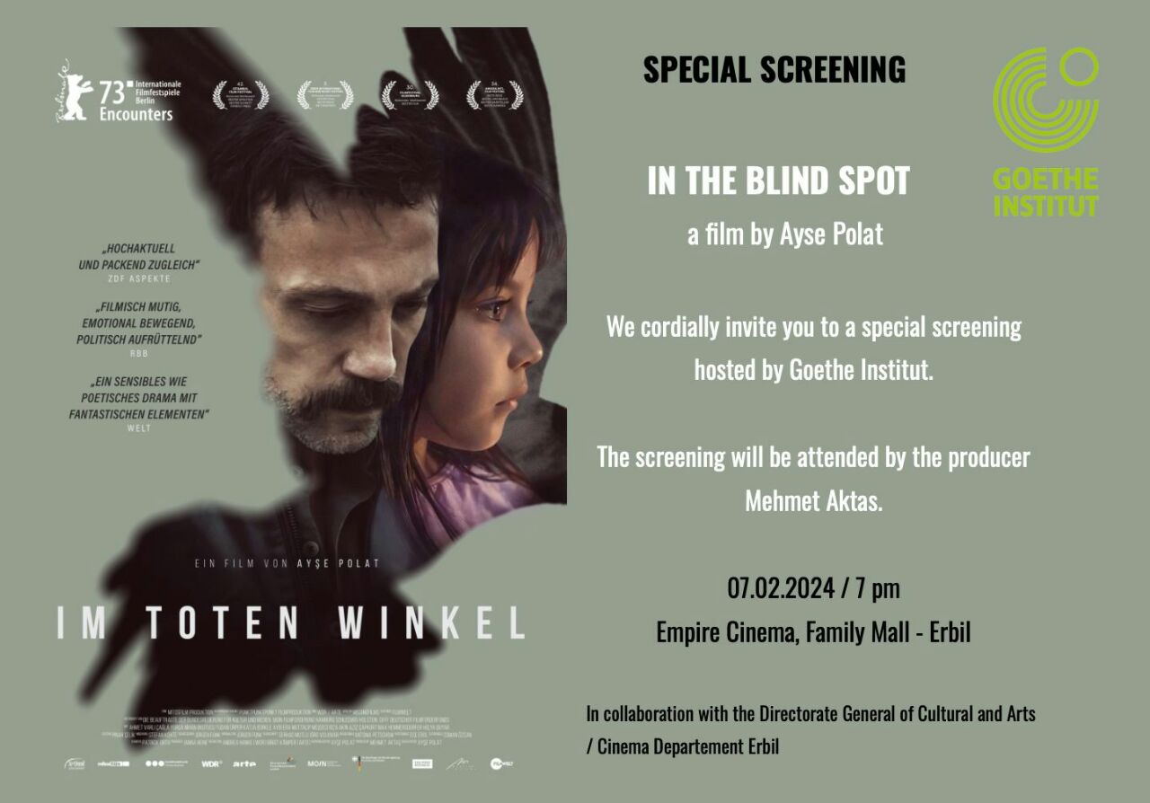 فیلمی سینهمایی "خاڵا تارییا" (خاڵی تاریک) In The Blind Spot لە بەرهەمهێنانی کۆمپانیای سینهمایی "میتۆس فیلم" Mitosfilm بە بهڕێوهبهری سینەماکاری کورد "مەمەد ئەکتاش" Mehmet Aktaş و له نووسین و دەرهێنانی "ئایشە پۆلات" Ayşe Polat دەرهێنەری باکووری کوردستان، له بەرهەمهێنەری هاوبەشی کۆمپانیای "پۆنکت" و تهلهڤیزیۆنهکانی WDR و Arteو بهرههمی وڵاتی ئهڵمانیا، له نمایشێکی تایبهتدا به هاوکاری ئهنستیتۆی "گۆته" Goethe-Institut ئهڵمانی له کاتژمیر ٧ی ئێوارێ ڕۆژی چوارشهمه ٧ی فێبریوەری (شوبات) 2024 لە سینهما "ئێمپایێر"ی Empire فامیلی مۆڵ له شاری ههولێر پێتهختی ههرێمی کوردستان پیشان دهدرێت.
