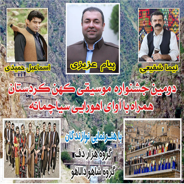 مهنسوور جیهانی ـ "پیام عەزیزی" گۆرانیبێژی کورد، بە هاوبەشی لەگەڵ گرووپی "هەزار داف"، گرووپی "نهوای ڕهحمهت" و گرووپی "شاهۆی داڵاهۆ" لە دووهەمین خولی فێستیڤاڵی مۆسیقای دێرینی کوردستان، لە گوندی مێژوویی و گەشتیاریی پاڵەنگانی کامیاران، کۆنسێرتێک بهڕێوهدهبات.