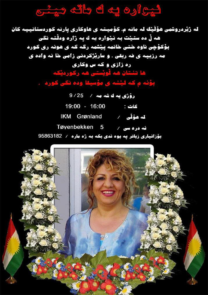- یهکێتی ژنانی ئهلبۆرگ له دانمارک، کۆڕی ماتهمیان به خاتوو مهرزیه گێڕا