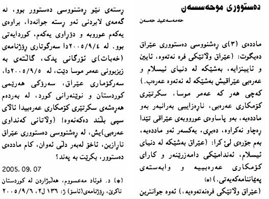 - لێکدانهوه و ههڵوێستی یهکێتی کۆمۆنیستهکان له عێراق سهبارهت به ڕهشنووسی دهستووری ههمیشهیی . . . یهکێتی کۆمۆنیستهکانی عێراق