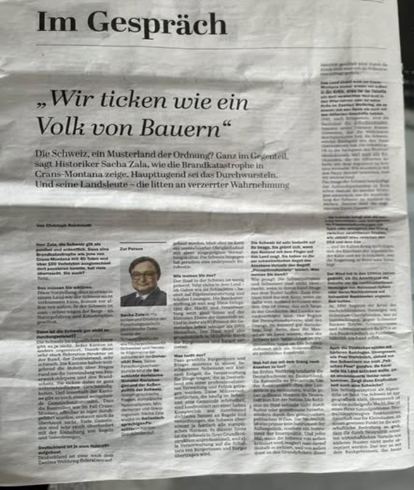 چاوپێکەوتنەکە لەگەڵ مێژووناس زاخا تسالا Sacha Zala لەلایەن رۆژنامەی دێر تاگەسشپیگلی ئەڵمانی و ڕۆژنامەوان کریستۆف رایشموتەوە ئەنجام دراوە ..